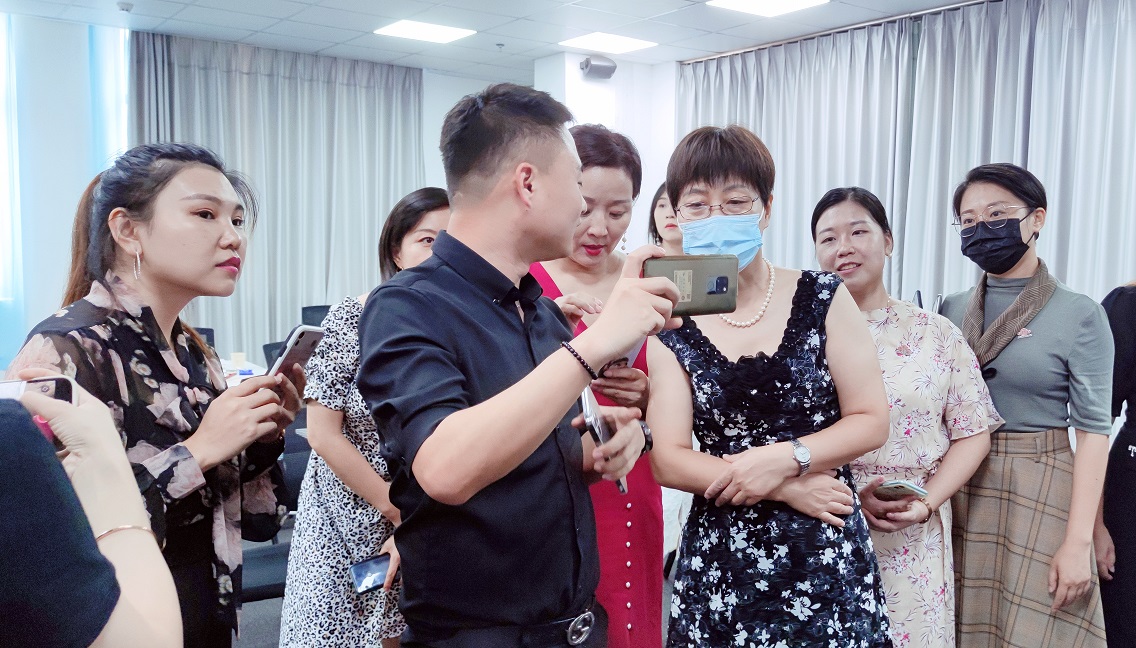 接著,呂老師用通俗易懂的語(yǔ)言帶領(lǐng)會(huì)員朋友們實(shí)操拍攝禮儀課堂花絮、課堂景別選取、運(yùn)鏡方式及后期制作要點(diǎn)。會(huì)員朋友們紛紛拿起手機(jī)跟隨老師實(shí)操,還提出很多關(guān)于拍攝的問(wèn)題,現(xiàn)場(chǎng)氣氛十分熱烈。