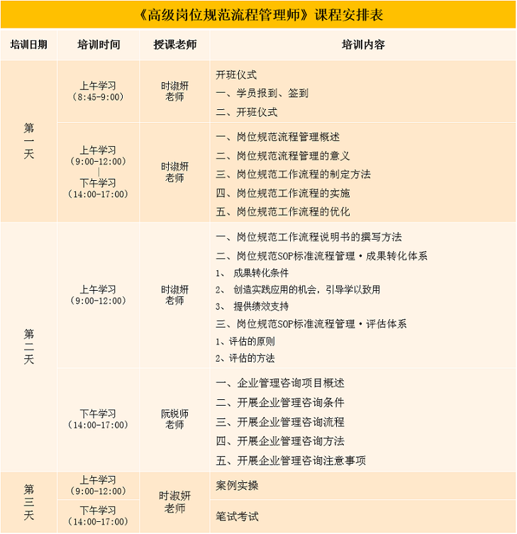 學(xué)習(xí)費用:5980元/人,含國內(nèi)權(quán)威機構(gòu)認證的 【高級崗位規(guī)范流程管理師】證書。(學(xué)習(xí)費用可刷公務(wù)卡繳費)。
